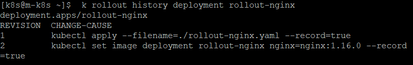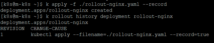 # --record 옵션을 통해 배포한 정보의 히스토리 기록