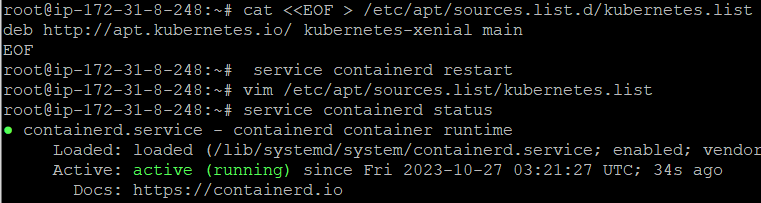 cat <<EOF > /etc/apt/sources.list.d/kubernetes.list deb http://apt.kubernetes.io/ kubernetes-xenial main EOF