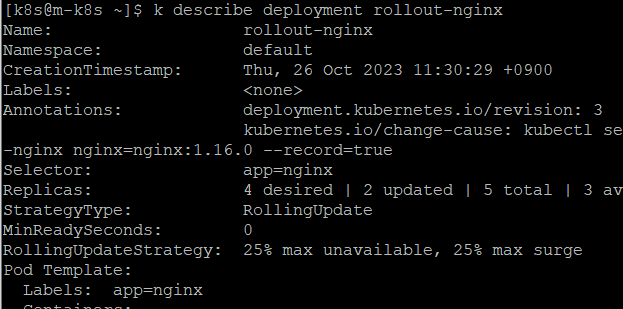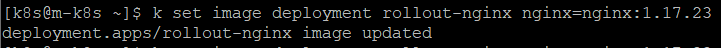 k set image deployment rollout-nginx nginx=nginx:1.17.23