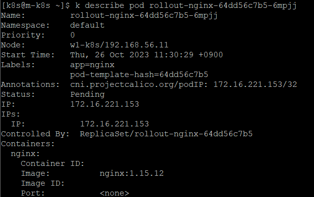 k describe pod rollout-nginx-64dd56c7b5-6mpjj
