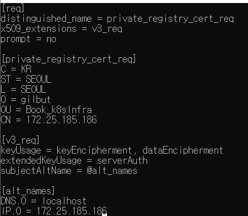 # 인증서 파일인 tls.csr 내 ip 설정 변경