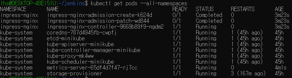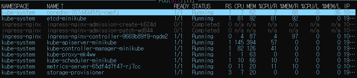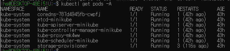 # minikube 가 정상실행 됐는지 확인하기위해 pod 확인