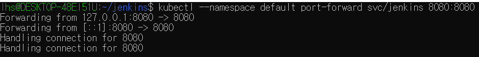kubectl --namespace default port-forward svc/jenkins 8080:8080